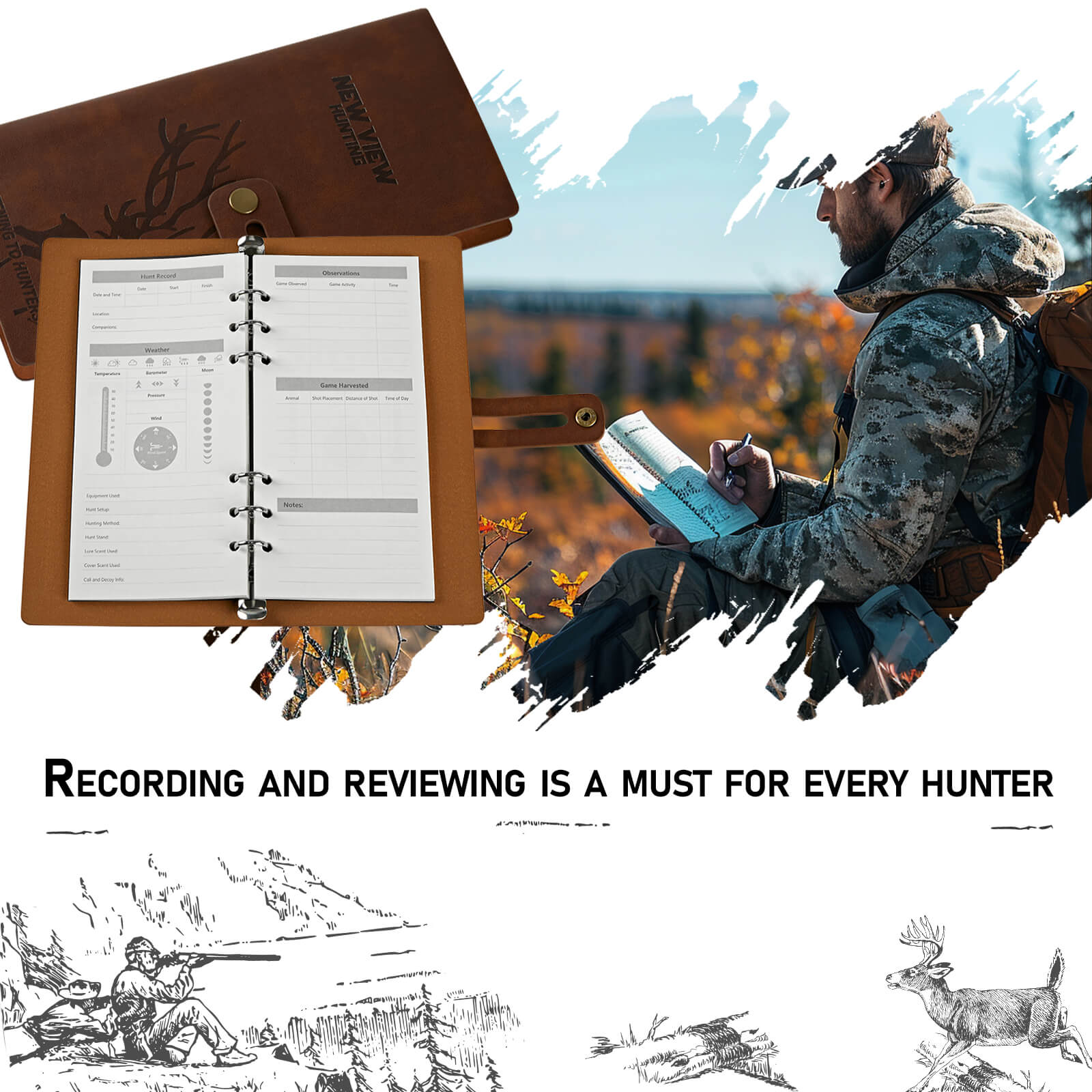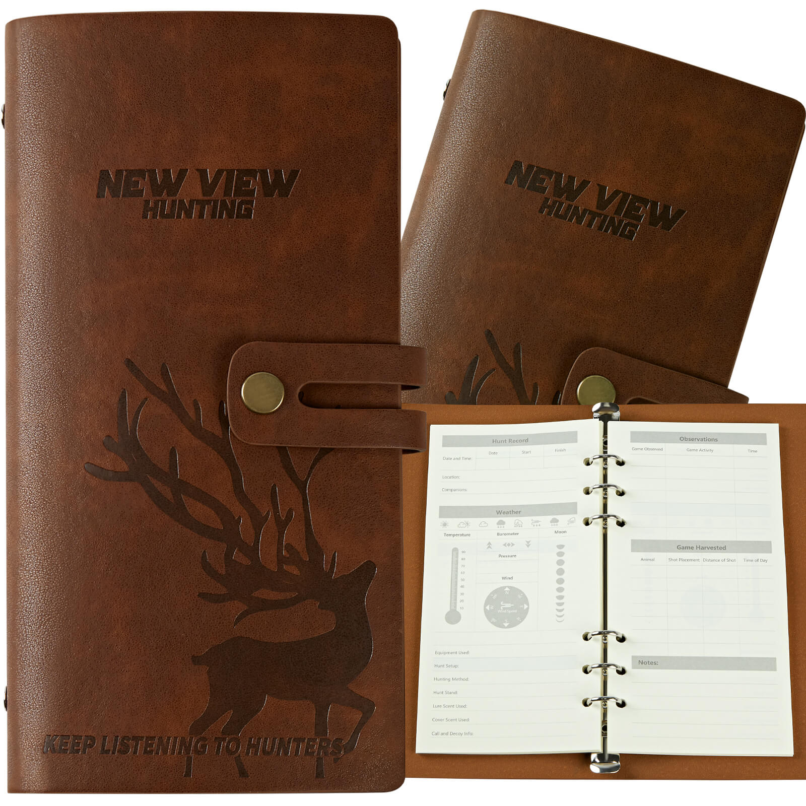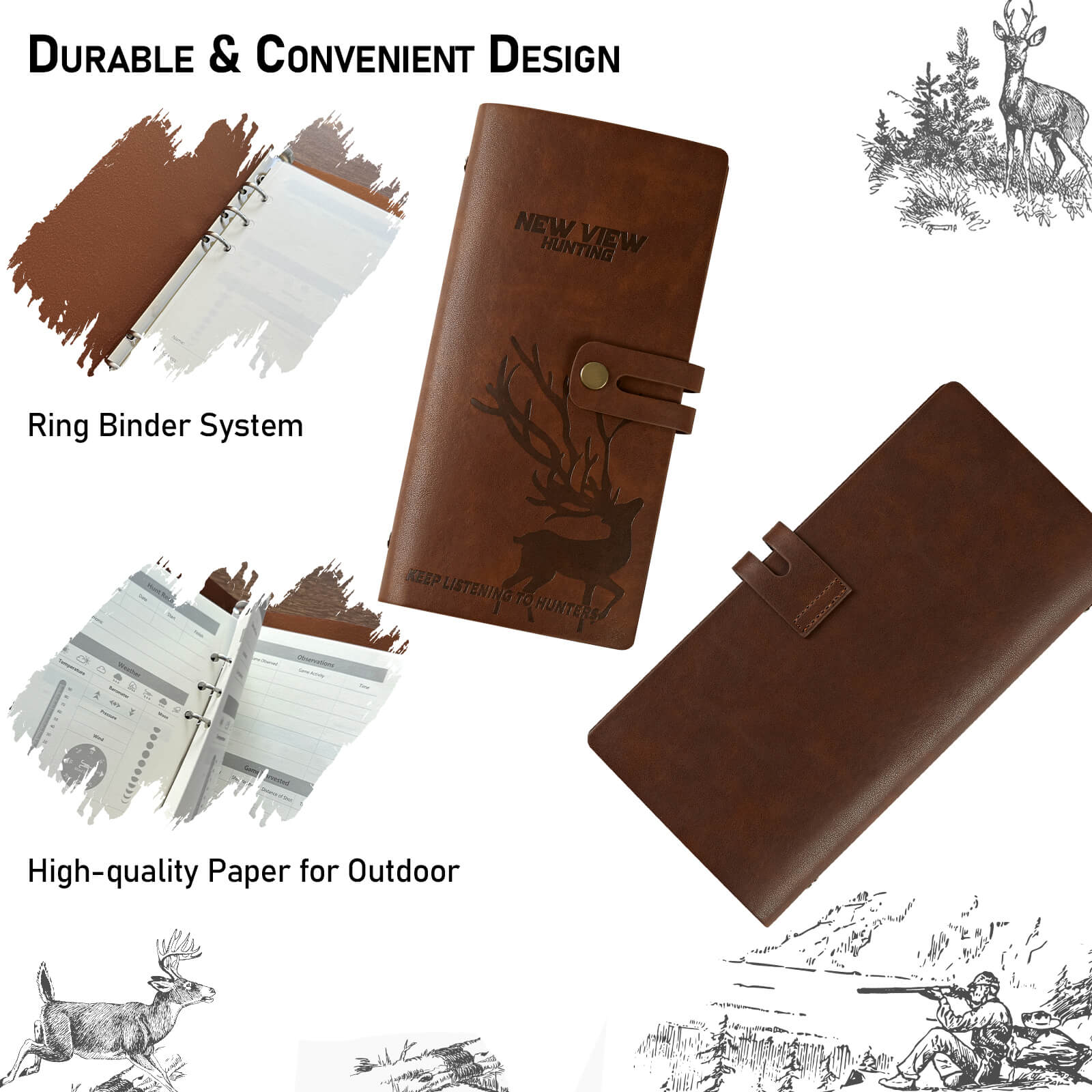2 Pcs Leather Hunting Log Book for Hunting Record, 100 Pages Side