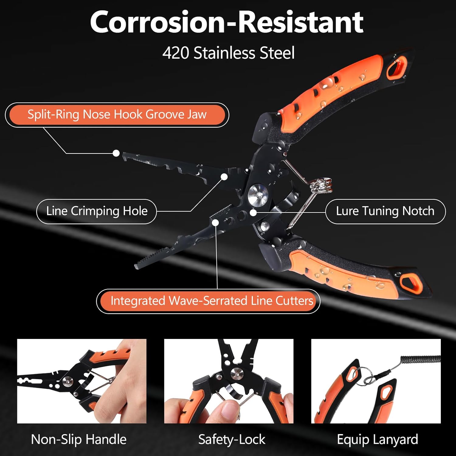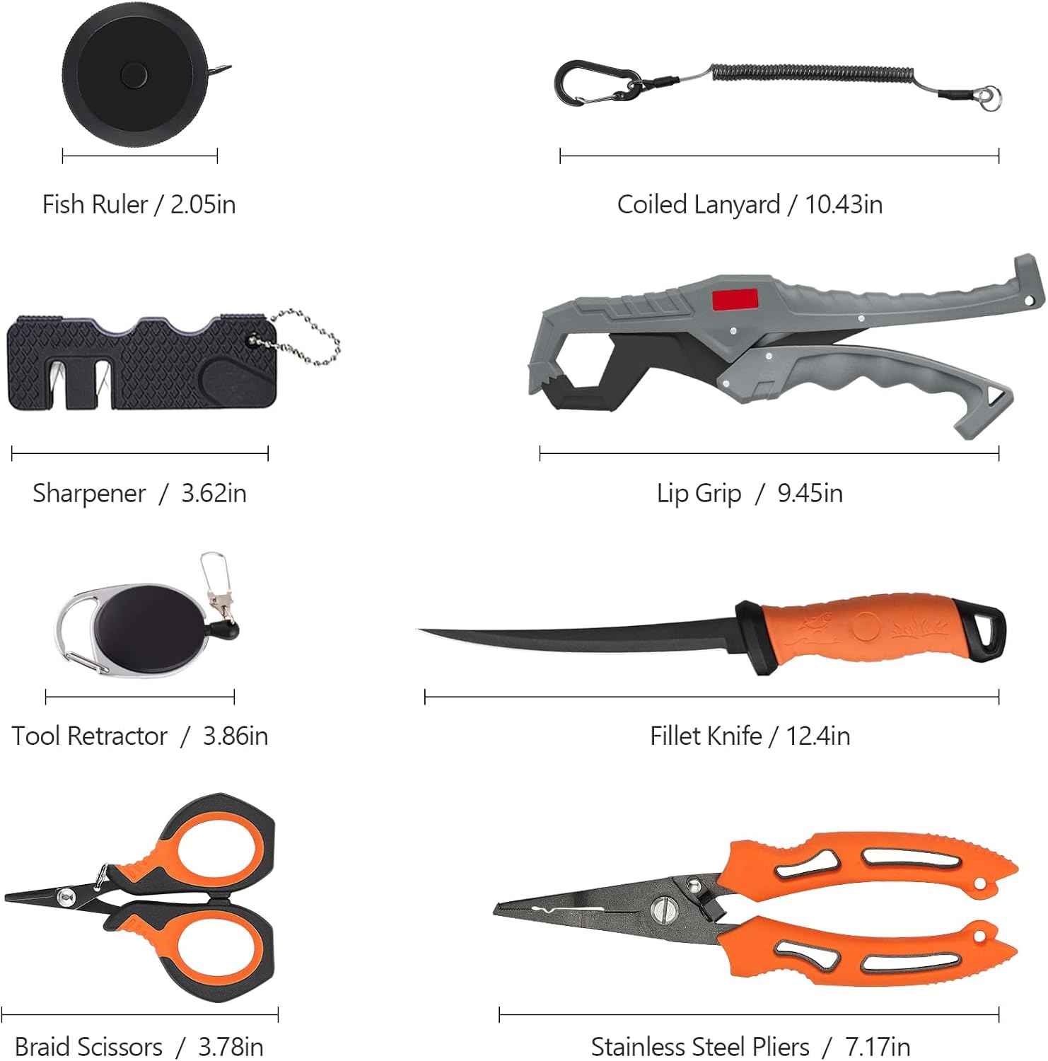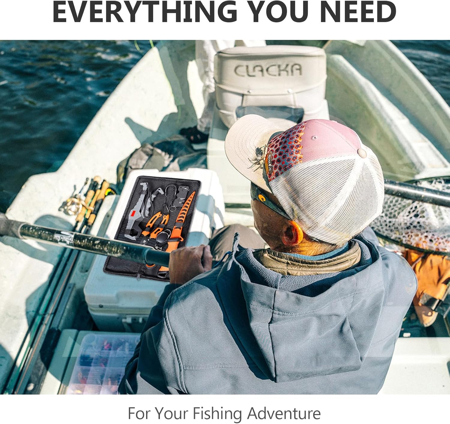 NEW VIEW 9pc & 10pc Professional Fishing Gear Tool Kit - Saltwater & Ice Fishing Tools Set - Corrosion Resistant Fishing Pliers Knife Scissors Gripper Kit with Fishing Gear Carrying Case