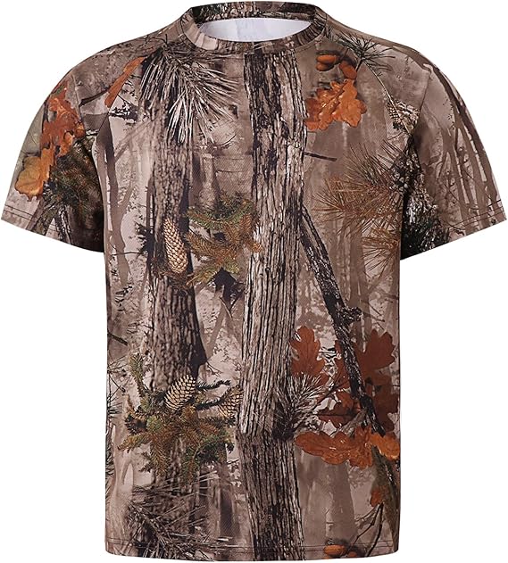 NEW VIEW Hunting Camo T-Shirt, Short Sleeve Tactical Hunting Tee, Crewneck Outdoor Camouflage Shirt for Men