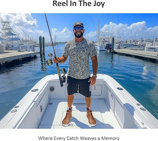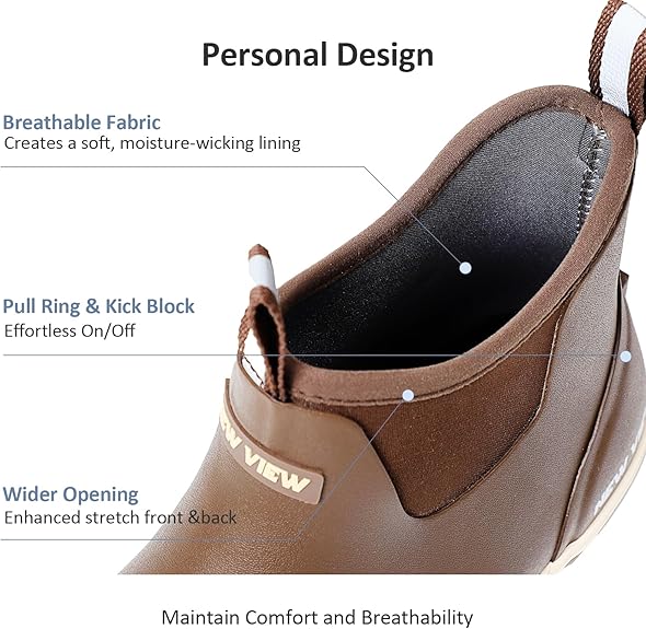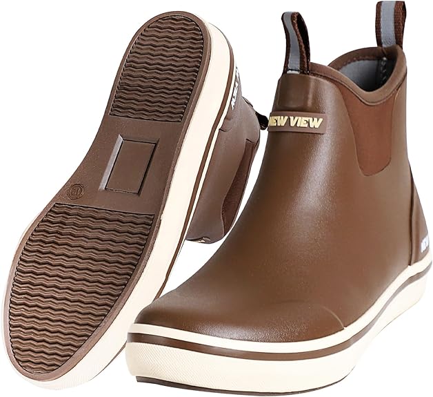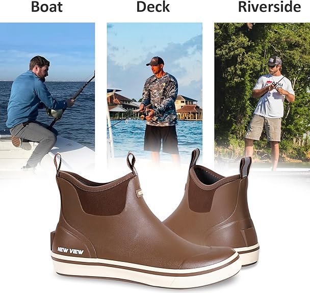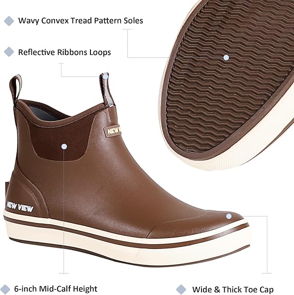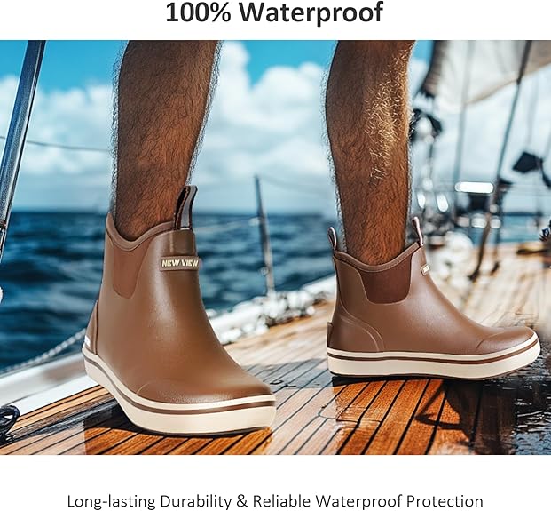 NEW VIEW Deck Boots for Men, Waterproof Slip-Resistant Fishing Boots with Breathable Neoprene Lining, Rubber Ankle Deck Boots, for Fishing Raining Wading, Size 8-12