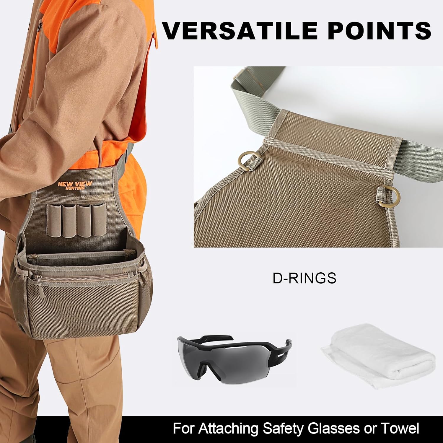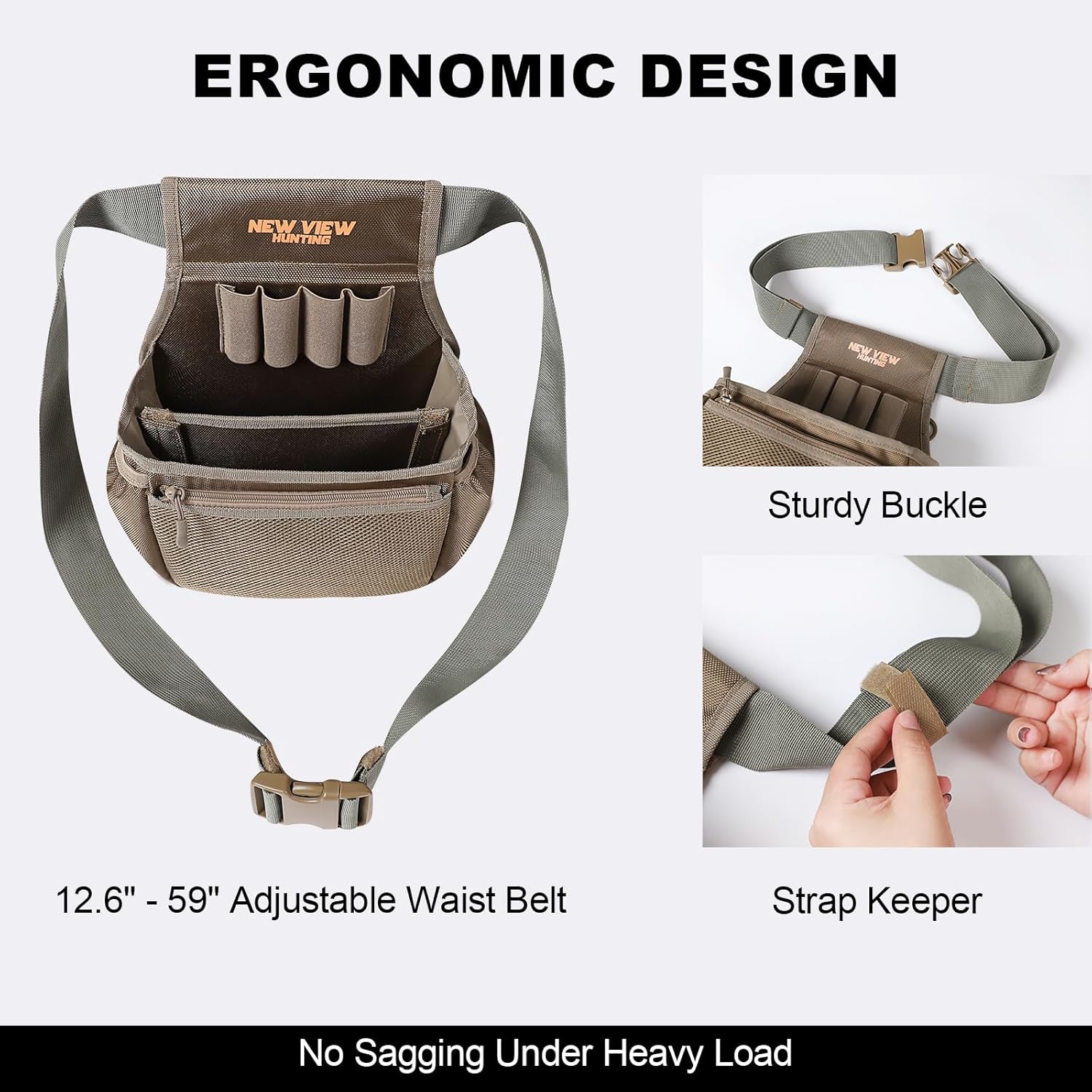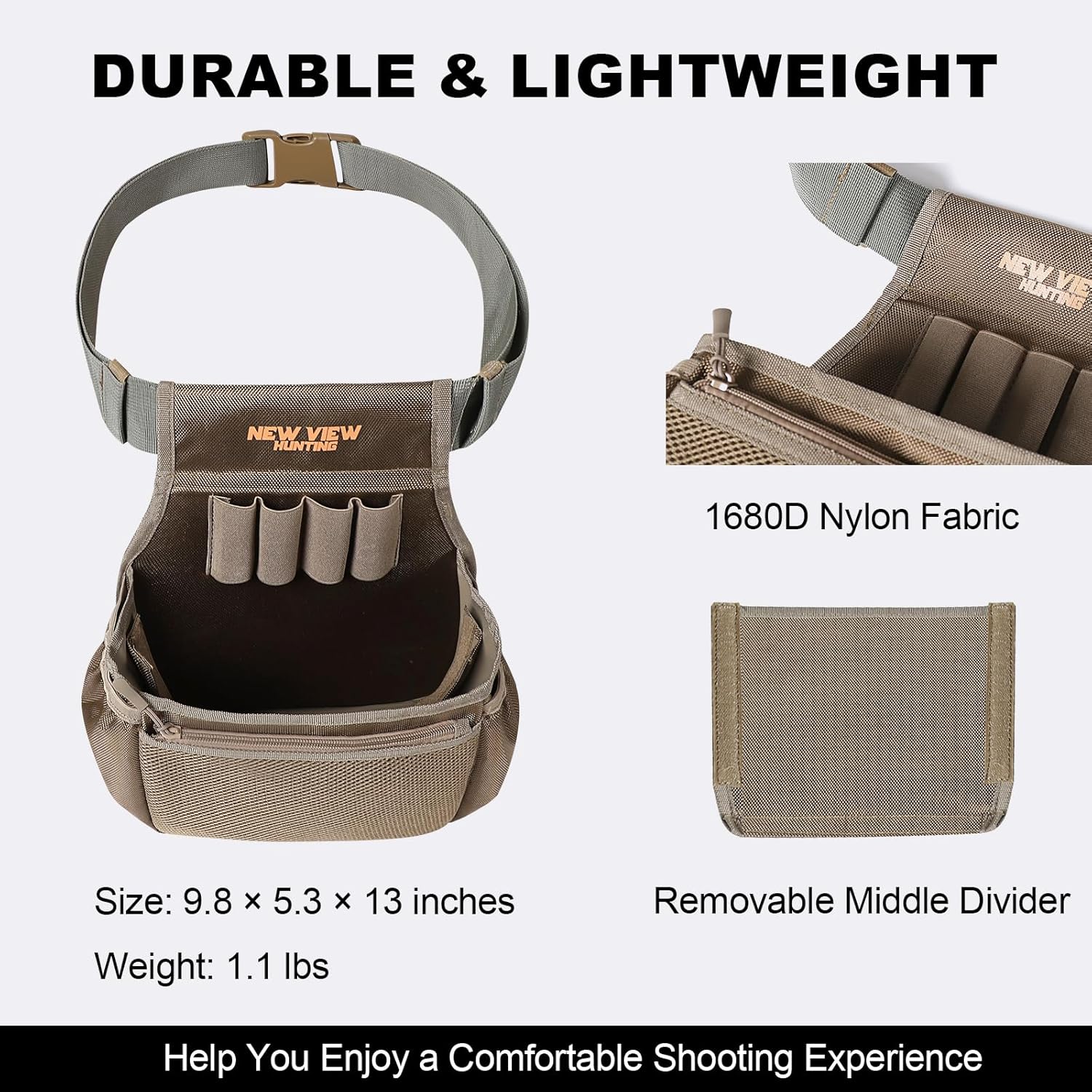 Removable Double Compartment Shell Bag - Shotgun Shell Pouch with 59 Inch Waist Belt & Chock Holder - Holds 60 Hulls, Fast Shell Removal - Shooting Accessories for Sporting Clays, Trap Shooting