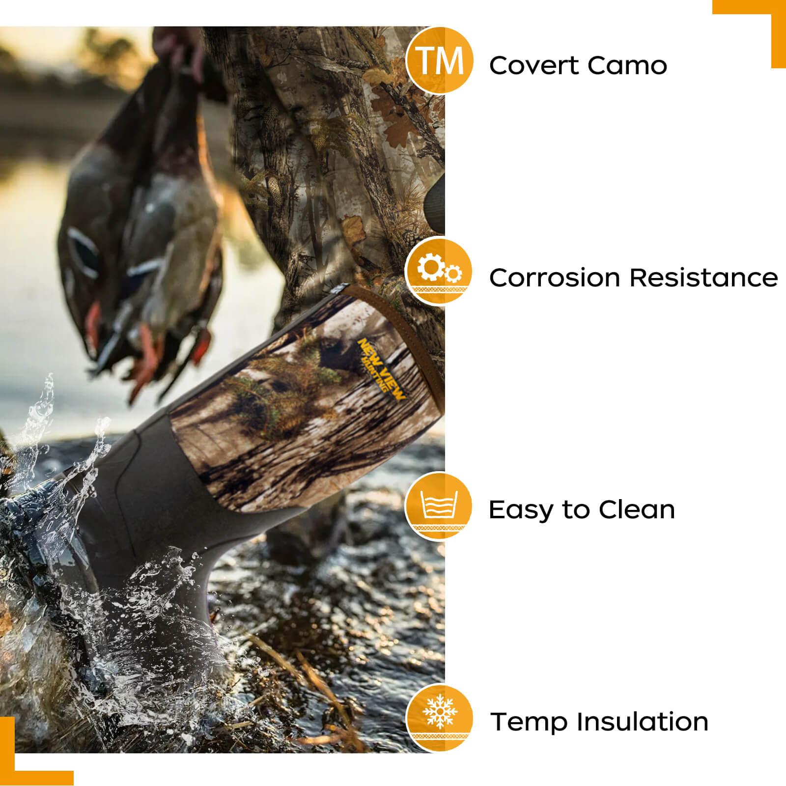Insulated Hunting Boots for Men Cold Weather, 6mm Neoprene Rubber Hunting Boots for Winter, Camo Durable Waterproof Mud Boot for Deer, Duck, Bird Hunting