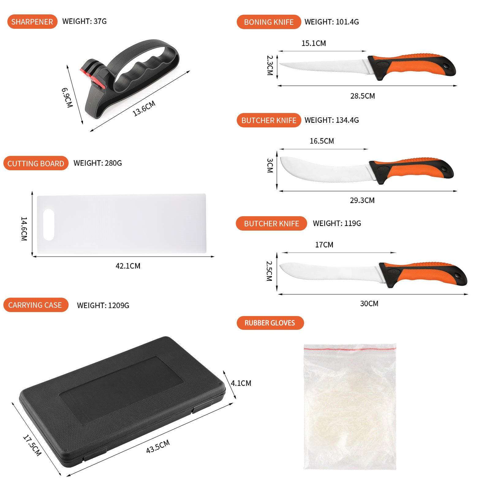 Deer Processing Hunting Knife Set, 7-Piece Game Field Dressing Kit