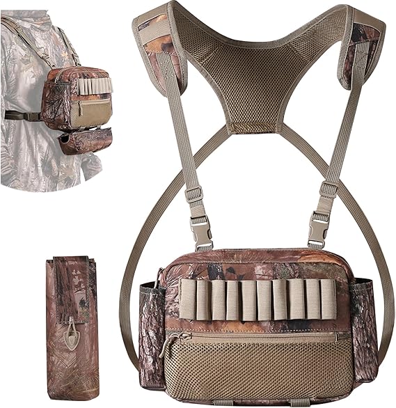 Lightweight & Breathable: Unlike bulky turkey vests or backpacks, this chest pack is lightweight and features a mesh back panel for improved airflow, ideal for active hunting styles