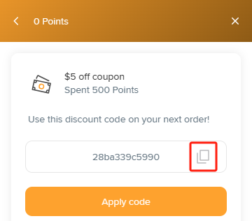 Click the floating icon "Rewards" on the right below to open the rewards page. It’s easy to redeem points, use the discount code and apply at checkout. Make sure you are signed in before doing all these steps.