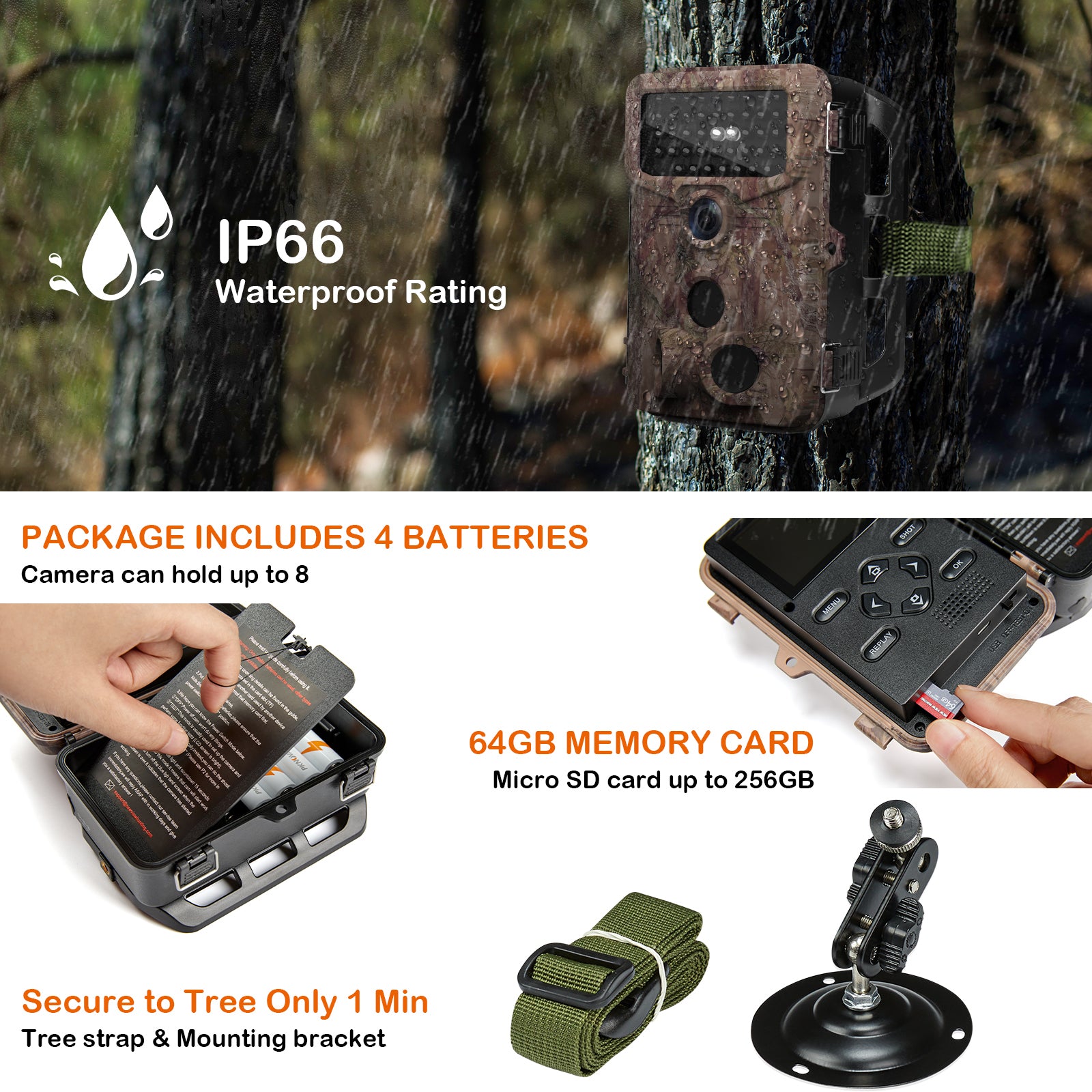 - 65ft Night Vision: 44 no-flash IR LEDs provide clear night images without scaring wildlife.
