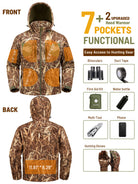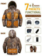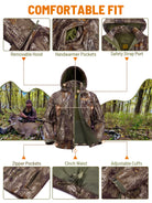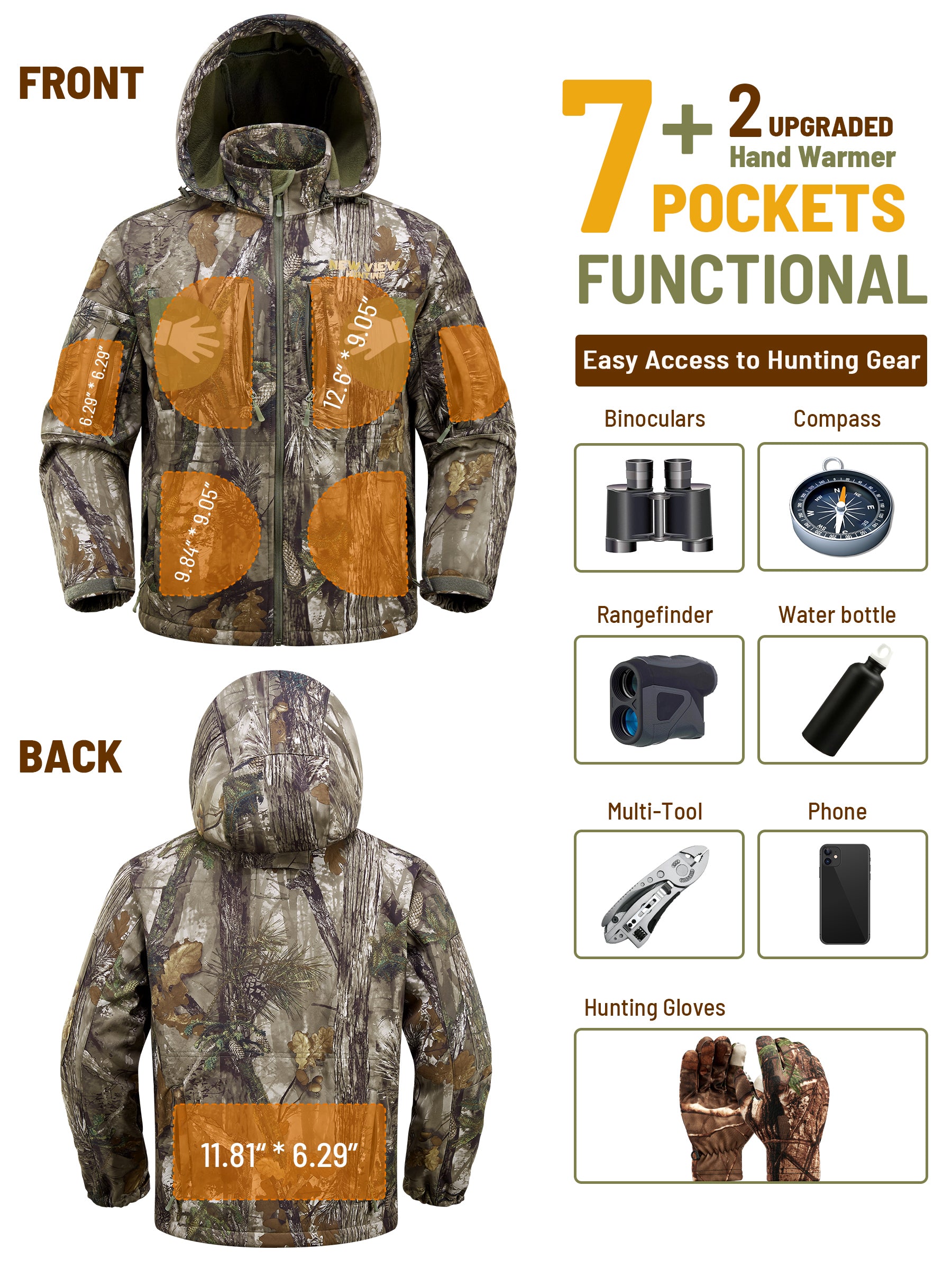 • 9 Pockets: Multiple pockets including hand warmer, chest, arm, front zipper, and back pockets for easy access to hunting essentials.