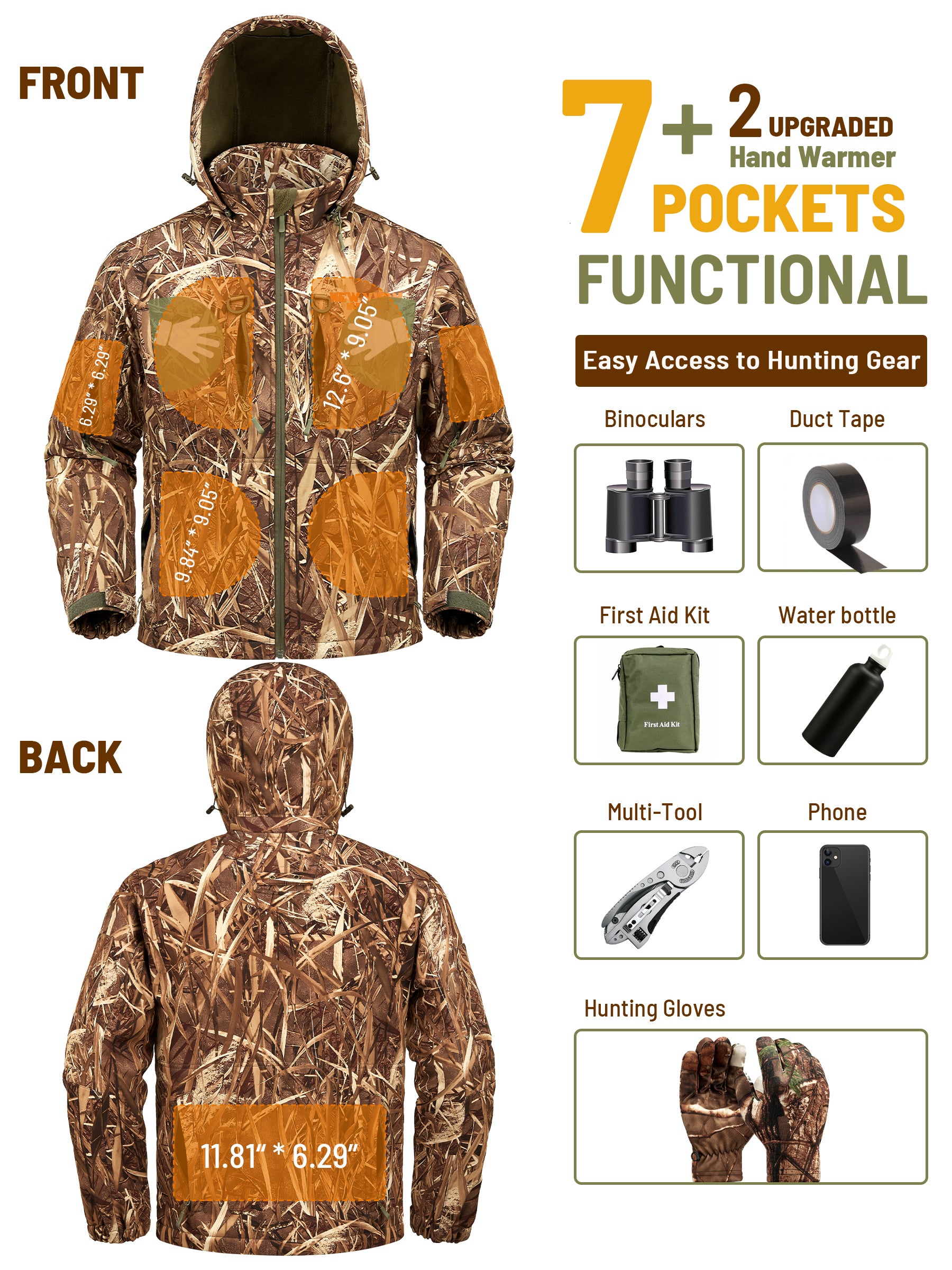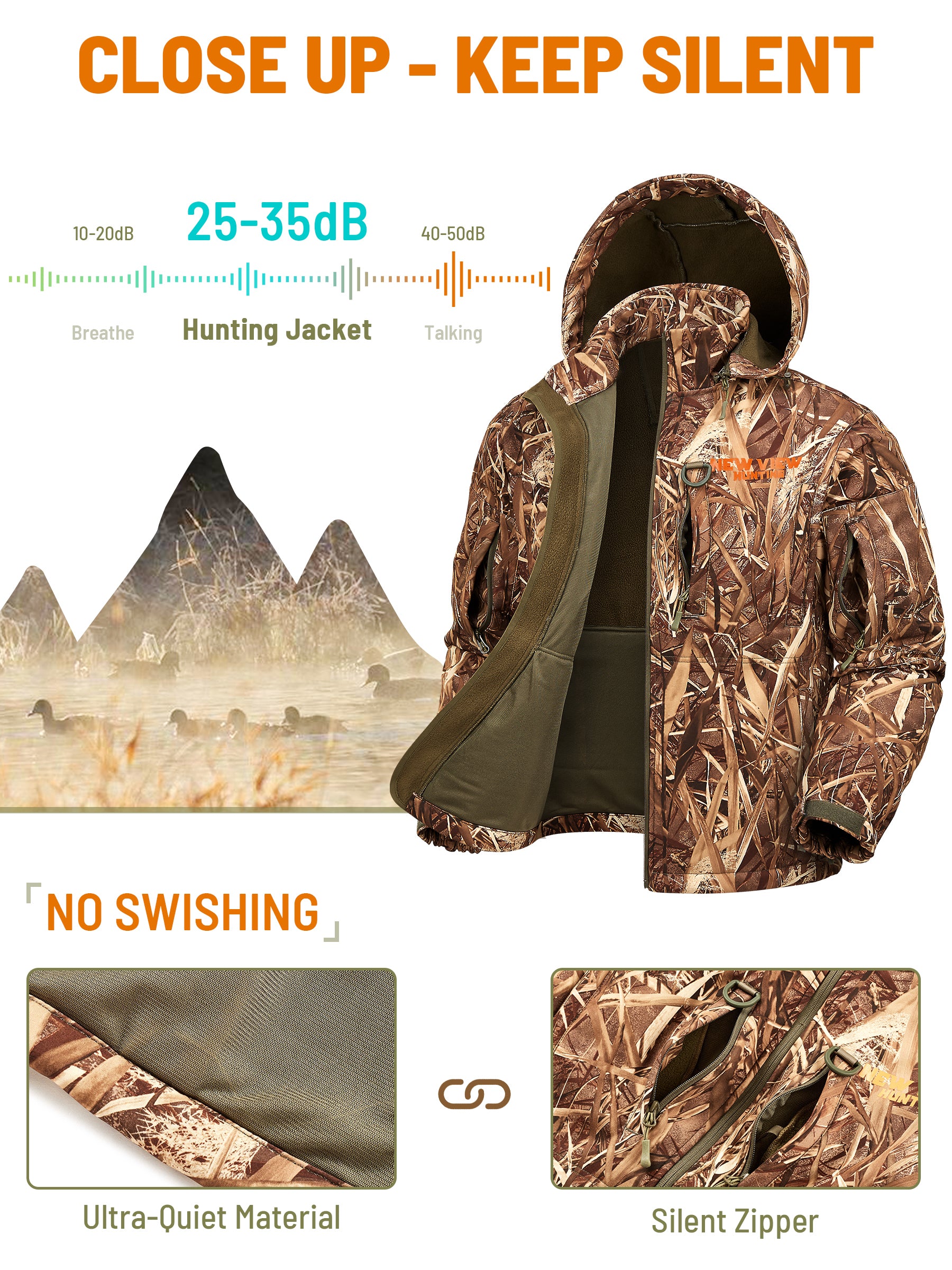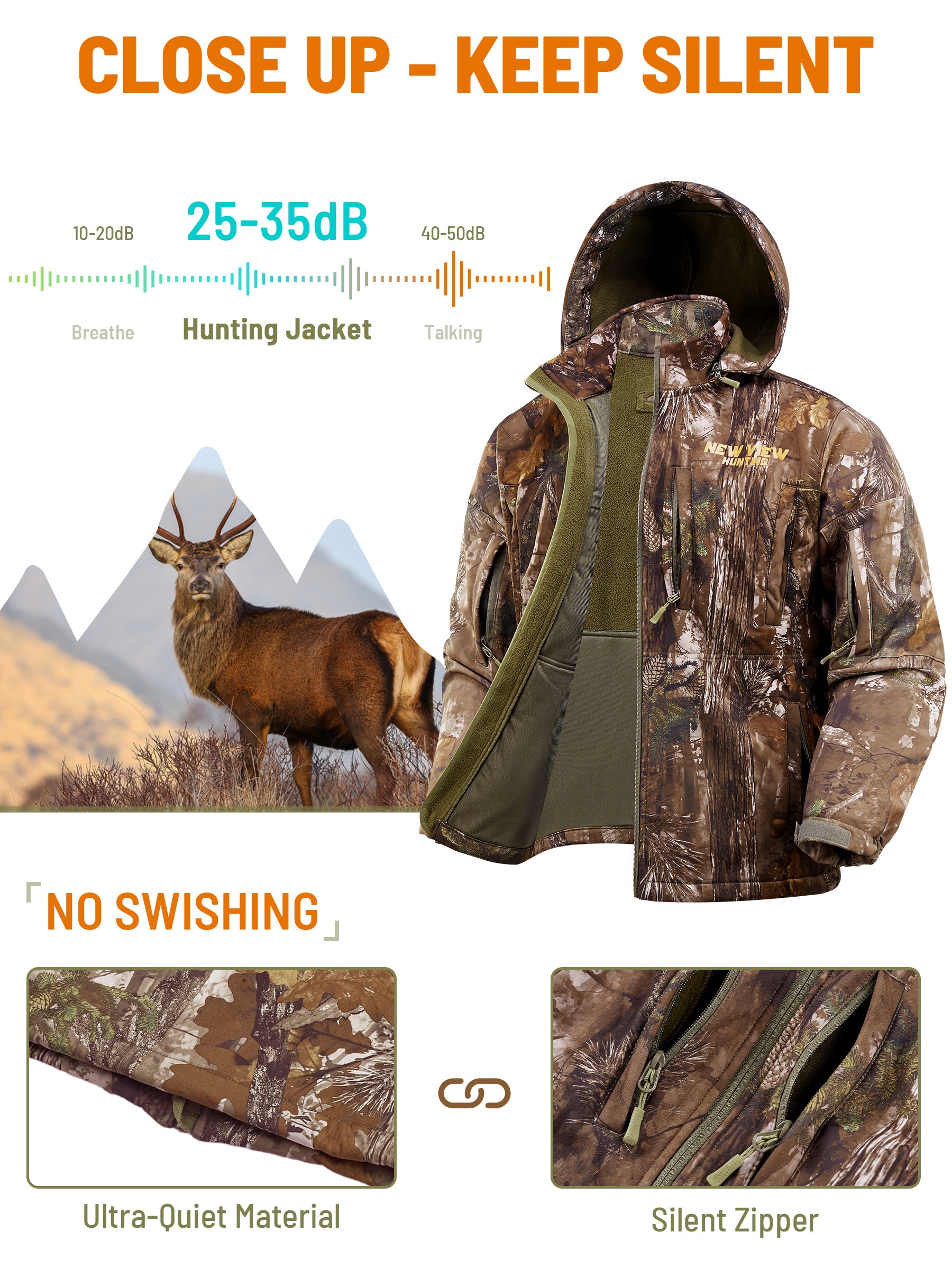 Quiet and Water-resistant Camo Hunting Jacket for Men with Fleece Lining