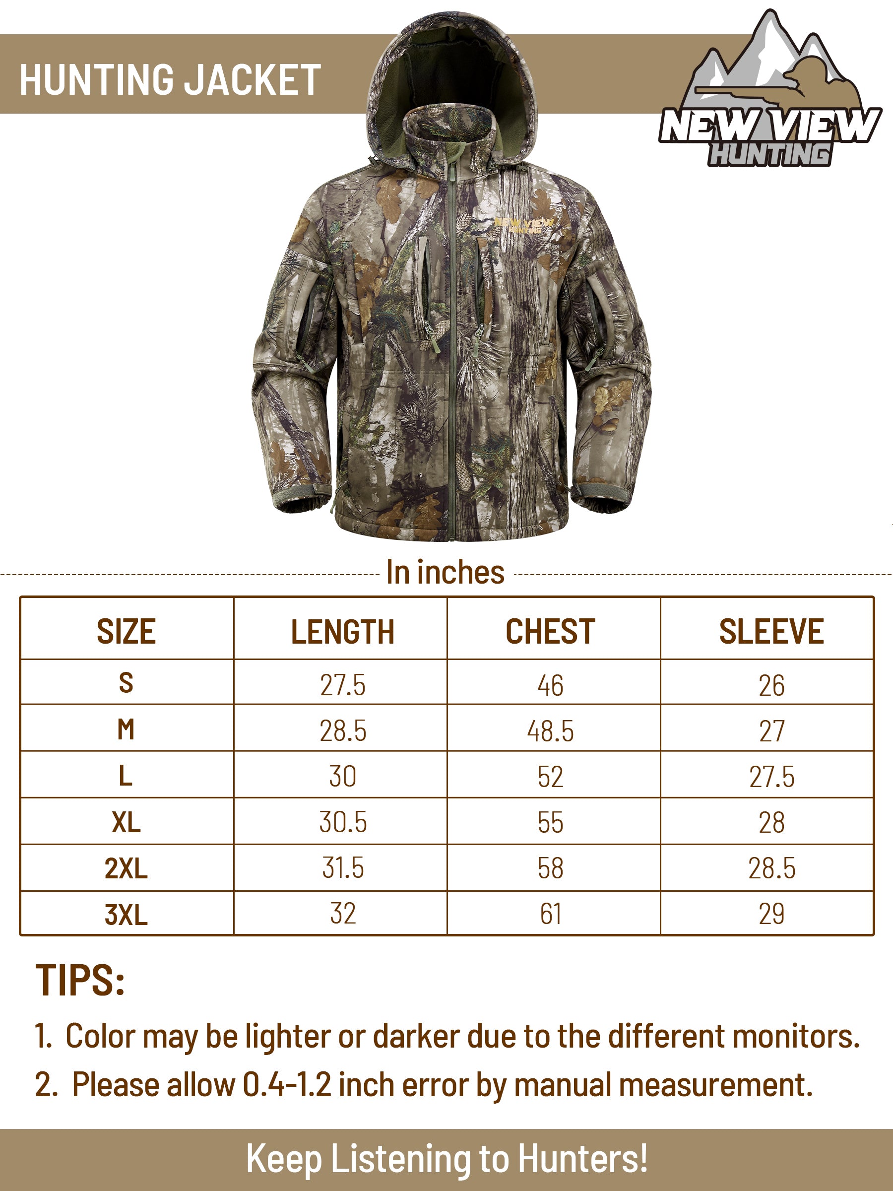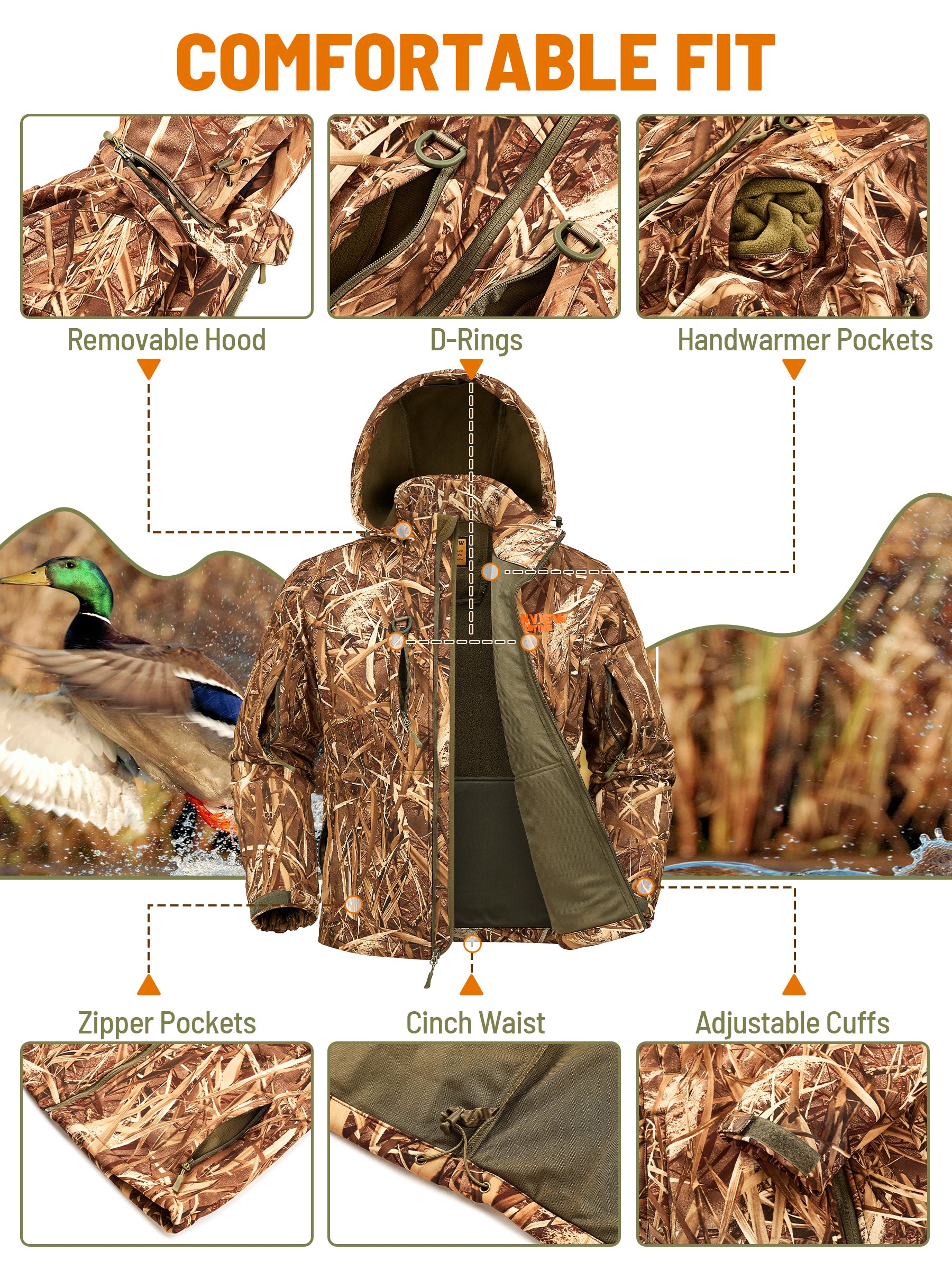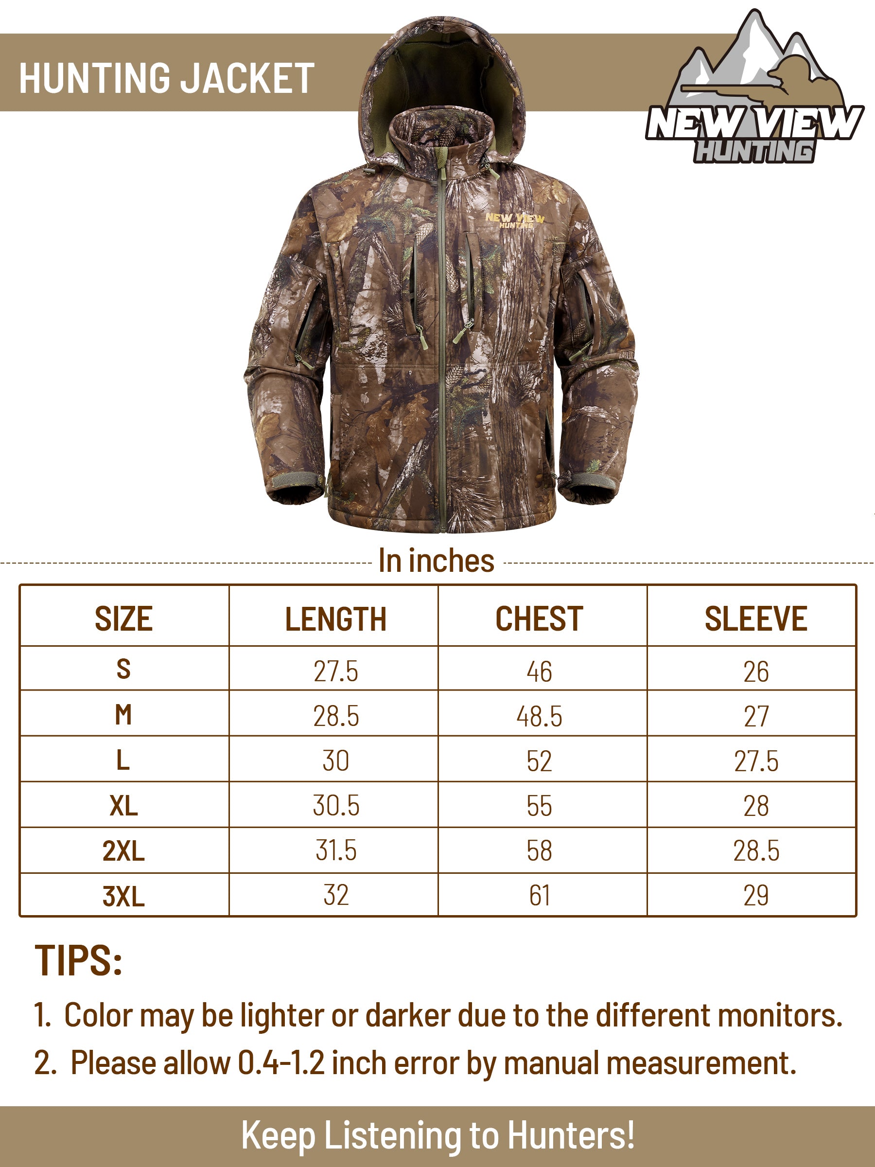 Keep Warm: This warm hunting jacket made from durable polyester. Water resistant softshell and fleece lining protect from the elements, and the breathable mesh fabric adds comfort. Stay warm and comfortable during early season and even winter hunts with mens hunting clothing.
