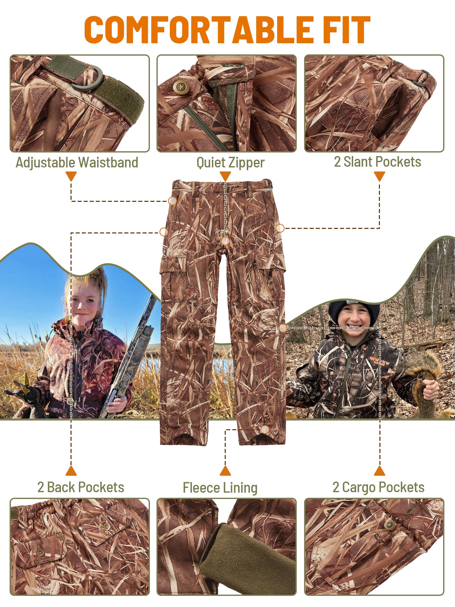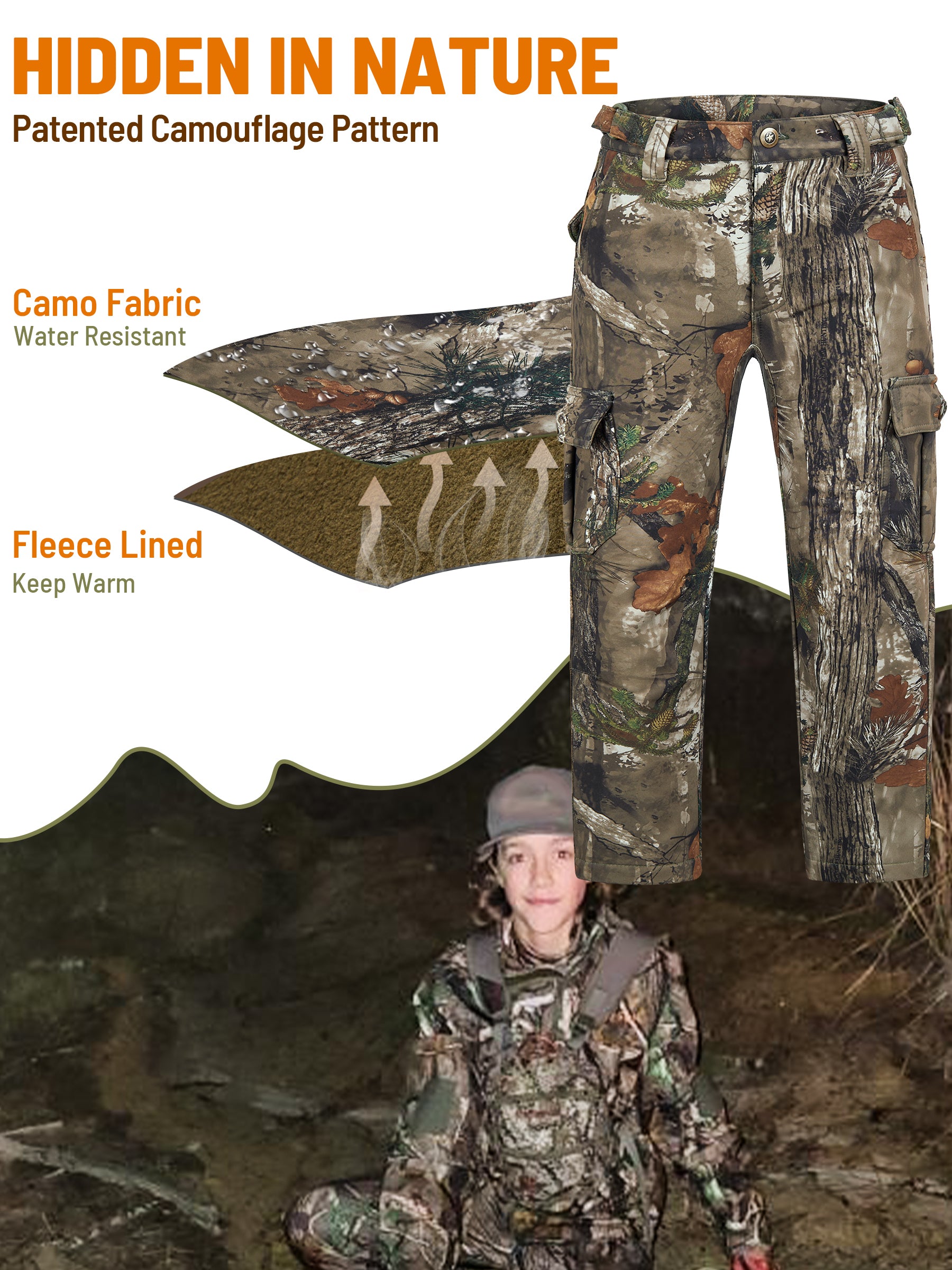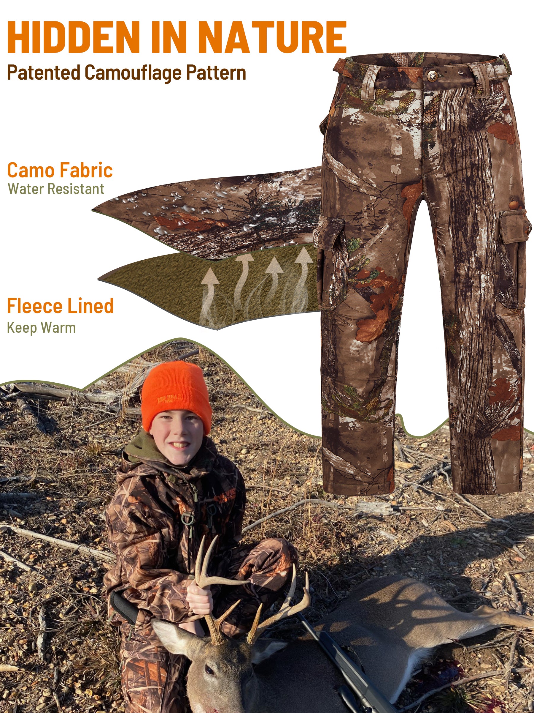 Fleece-lined Camo Hunting Pants for Kids and Youth