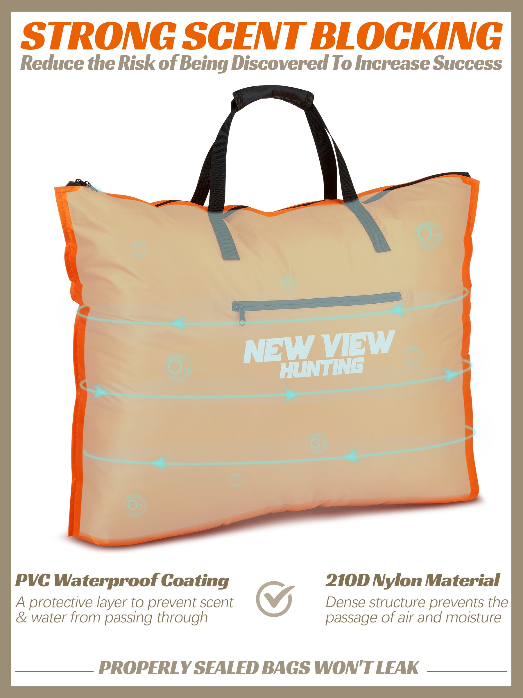 - 2 Pieces of Large Scent Free Hunting Bag - One for storage and keeping hunting clothes scentless, the other for locking the odor of your everyday clothes inside the bag after you put on scent-eliminated apparel; it can also use as a dressing mat in the field